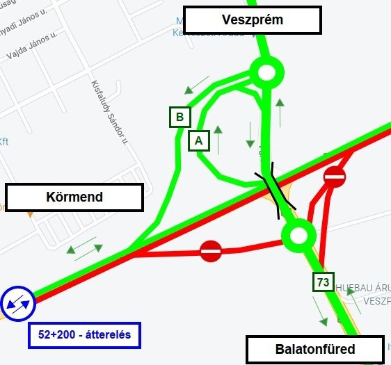 A hét folyamán várhatóan a Füredi csomópontban is megnyílik a B ág (Veszprém – Körmend).