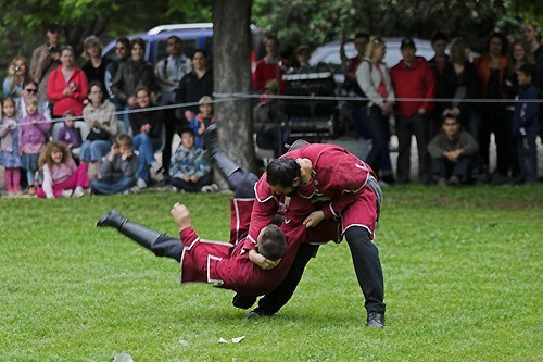 Tíz órától várták az érdeklődőket a Színházkertben, ahol megtekinthettek egy jurtaállítást, kipróbálhatták a csatacsillag és a lándzsahajítás fortélyait, illetve íjjal is célba lőhetett, aki tudott. Miután mindenki bemutatta a tudományát a profik vették át a szerepet.