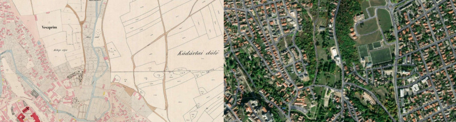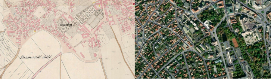 Az internetes alkalmazás bárki számára szabadon elérhető, ha felkeresi az Arcanum oldalát, ráadásul Magyarország, valamint Ausztria teljes területén barangolhat egy 19. századi madár szemszögéből, mi viszont most maradtunk Veszprémnél és itt nézünk szét érdekességeket keresve. (A 19. századi és napjaink térképe között a jobb felső sarokban lévő csúszkával tudnak váltani.)