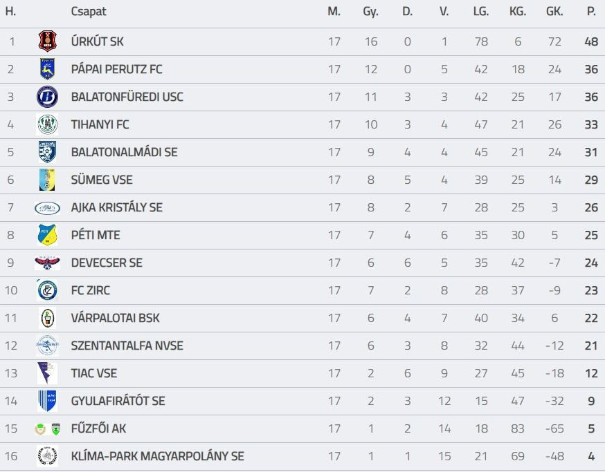 A tizennyolcadik körhöz érkezve immár tizenkét pont a listavezető Úrkút előnye a Veszprém vármegyei I. osztályú labdarúgó-bajnokságban. Az éllovas az előttünk álló hétvégén Zircre látogat. A Sümeg péti vendégjátéka csakugyan komoly izgalmakat tartogat, ahogy a Pápa kontra Ajka derbi is.
