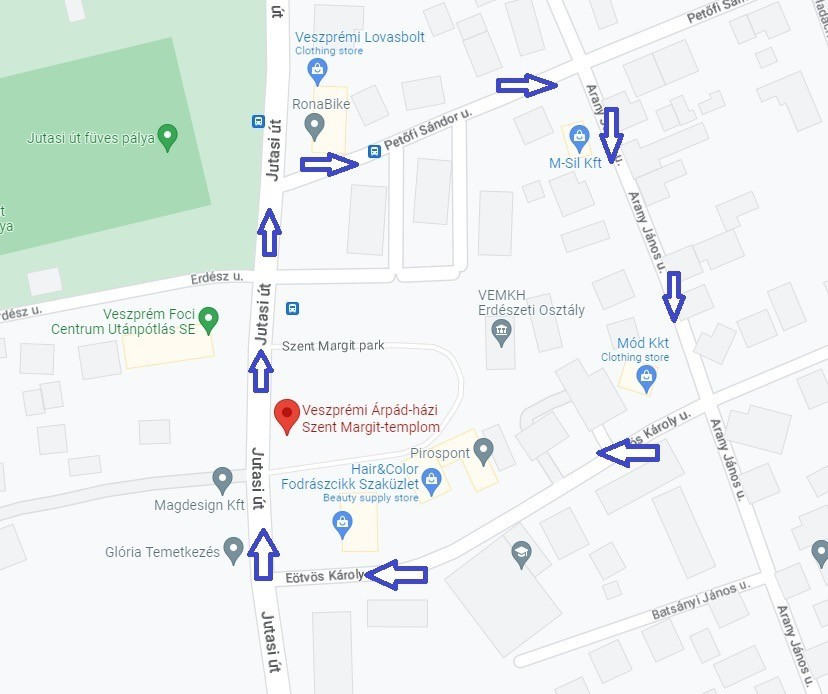 A forgalom lassulására kell számítani 2023. április 8-án, szombaton körülbelül 20 óra 30 perctől 21 óra 15 percig a nagyszombati körmenet miatt Veszprém belvárosában. A tervezett útvonal: Margit templom – Jutasi út – Petőfi Sándor utca – Arany János utca – Eötvös Károly utca - Jutasi út – Margit templom. A körmenet a kijelölt útvonalon a menetirány szerinti fél útpályát foglalja el.
