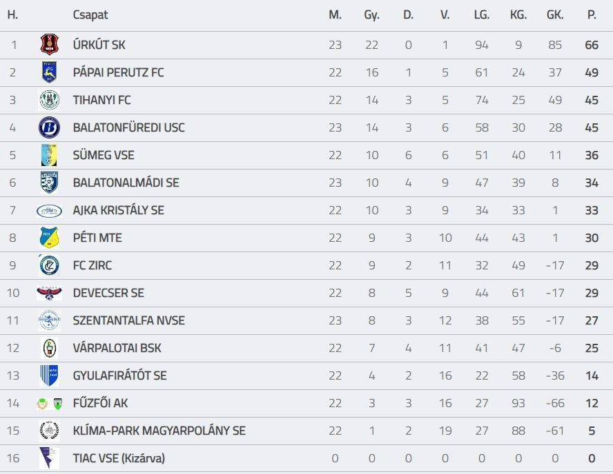 A listavezető Úrkút a Sümeggel találkozik: ha a házigazda nyer, egyúttal a bajnoki címet is megszerzi!