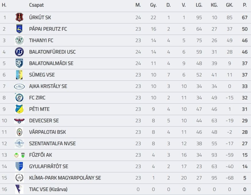 Az elmúlt fordulóban biztossá vált, hogy az Úrkút SK sikeresen megvédte címét, idén is megnyerte Veszprém vármegyei I. osztályú labdarúgó-bajnokságot. A dobogó további pozícióiért ugyanakkor még parázs csaták várhatóak az előttünk álló fordulókban.