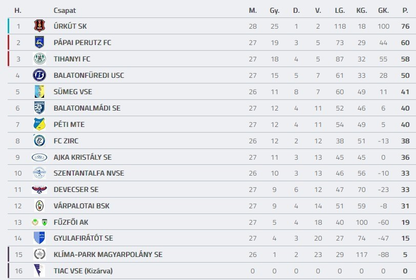 Vasárnap két összecsapás szerepelt a programban. A Gyulafirátót 2-0-s vezetés után ikszelt a vendég Sümeg ellen (2-2). A Zirc pedig 2-0-ra verte a Balatonfüredi USC-t, utóbbi így biztosan a negyedik helyen végez.