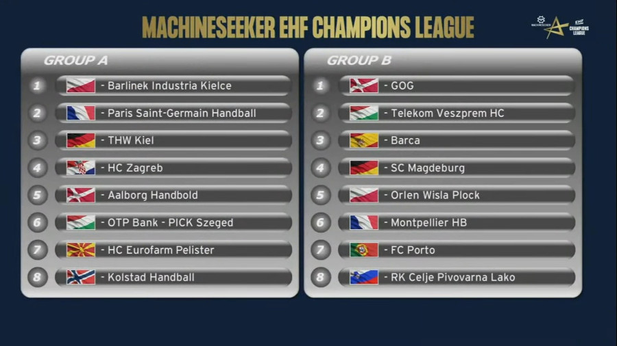 A férfiaknál a magyar bajnok Telekom Veszprém az első, az OTP Bank-Pick Szeged pedig a második kalapból várta a június 27-i sorsolást. Akárcsak az elmúlt években, idén is két nyolcas csoportban zajlanak majd a csoportküzdelmek tizennégy fordulóval.