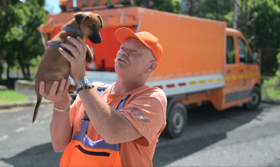 A veszprémi mérnökség egyik brigádja munkavégzés közben találta meg a kiskutyát július 4-én, amikor Veszprém és Fejér vármegye határán vízleeresztési munkát végeztek. A munka végeztével még elmentek felmérni és leellenőrizni a terepet, mivel a környéken mindig sok illegális szemét található. Ekkor a közutasok egy zsemleszínű mozgolódó foltra lettek figyelmesek. A szakemberek közösen kicsalogatták – igaz, ez nem volt egyszerű, mert nagyon megszeppent és mivel esett is az eső, ezért ázott-fázott, menedéket keresett. De nem hagyták magára, sikerült megfogni, majd a brigádszállító autóval rögtön elindultak a mérnökség felé, a telephelyen megszárították a kutyust, enni-inni adtak neki, és rögtön el is nevezték Ubinak.