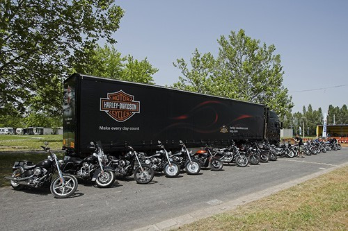 A kamionnyi csodajárgány márciustól szeptemberig járja Európát, hozzánk Varsóból érkeztek – tudtuk meg Mark Jennertől, aki a turné alatt - ahogy ő fogalmazott - a „motorok dadája”, és ehhez mérhető büszkeséggel mesélt róluk. A felsorakoztatott motorkerékpárok értéke három millió forintnál kezdődik, hangsúlyozottan eredeti gyári alapfelszereltségűek, a legértékesebb az Ultra LTD, amely mintegy harmincezer eurót kóstál. Mindegyiket ki lehet próbálni a regisztráció után, amennyiben a jelentkezők eleget tesznek az alapvető szabályoknak: zárt cipő, hosszúnadrág, dzseki viselése kötelező, jogosítványt és bukósisakot mindenki hozzon magával, és ezután már csak a szondázáson kell átesni, és indulhat is a konvoj egy megközelítőleg harminc kilométeres túrára a környéken.