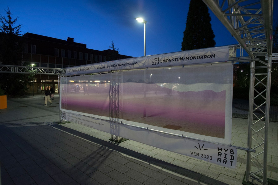 A Hybridart és a MONOTON/MONOKROM kiállításán végig sétálva egy QR kód segítségével egyszerre hallgatható és látható a Balaton-felvidék domborzata. December 2-án 15:30-tól a látogatók élőben hallhatják a Bakonyi régió útvonalának zenei anyagát. A jelenlévőkkel egy 20 perces kötött improvizáció során audiovizuálisan bejárjuk régiónk egy kiemelkedő szépségű és jellegzetes földtörténeti szakaszát. Az elméleti háttér bemutatása és a hanganyag élő megismerése után a résztvevők új kontextusban kapcsolódhatnak ahhoz a regionális tájegységhez, amiben élnek.