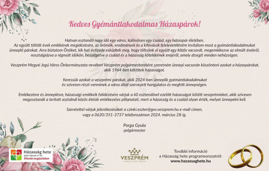 Kedves gyémántlakodalmas házaspárok!
