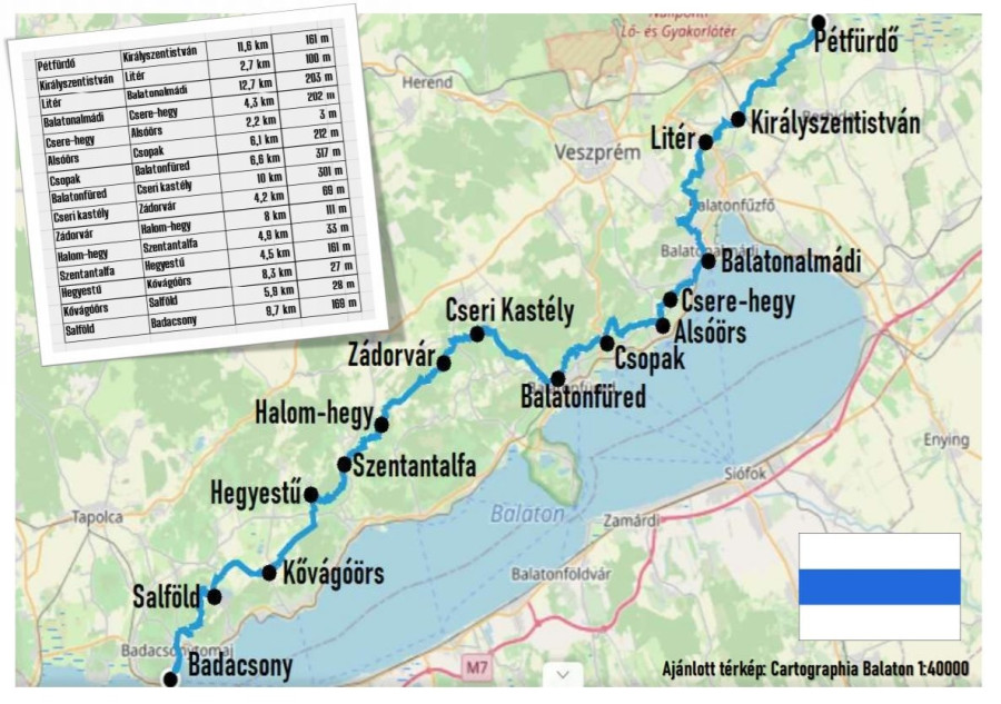 Utunk során a Balaton hol fel, hol eltűnik szemünk elől, a tó fölé magasodó dombokat és az erdők mélyét járhatjuk be, felkapaszkodhatunk a varázslatos panorámát nyújtó kilátókhoz és kellemes hangulatú vendéglátóhelyeken öblíthetjük le az út porát. Hasonlóan országos nagy testvéréhez, a Balaton-felvidéki kék szakaszait is tetszőleges sorrendben és irányban teljesíthetjük, a lényeg, hogy a pecsételő pontokat érintve és a dátumokat feljegyezve dokumentáljuk az igazolólapon. A jutalmunk ezúttal is egy a túra teljesítését igazoló kitűző.