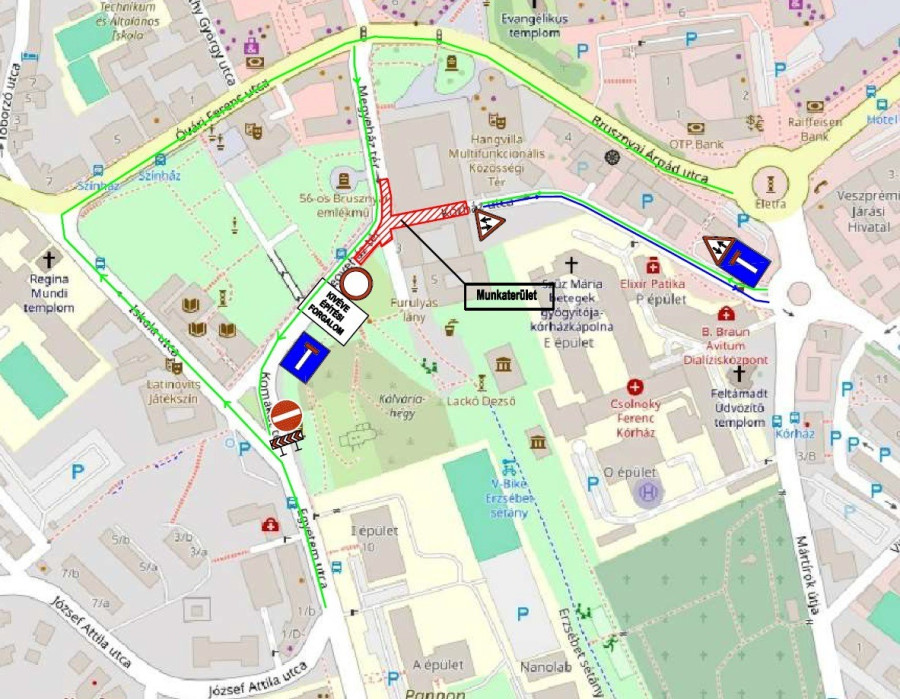 1. Megkezdődik a Megyeház tér–Kórház utcai csomópont felújítása, amelyet a kivitelezés idejére lezárnak. A Kórház utca ezen idő alatt „fentről” zsákutca lesz, a bejutás a gyorsétterem felől, azaz a Mártírok úti körforgalomból lesz lehetséges. A kétirányú forgalom biztosítása érdekében a Kórház utcában megállási tilalom lesz érvényben, parkolásra az utcában nem lesz lehetőség. Az Egyetem utca felől érkező forgalmat az Iskola utcára terelik. A Mártírok útja, Bajcsy-Zs. utca, Mindszenty J. utca terelő úton, az Óvári F. utca irányából a Brusznyai Á. utcán keresztül lesz elérhető. A kivitelezés előre láthatóan három hétig tart.