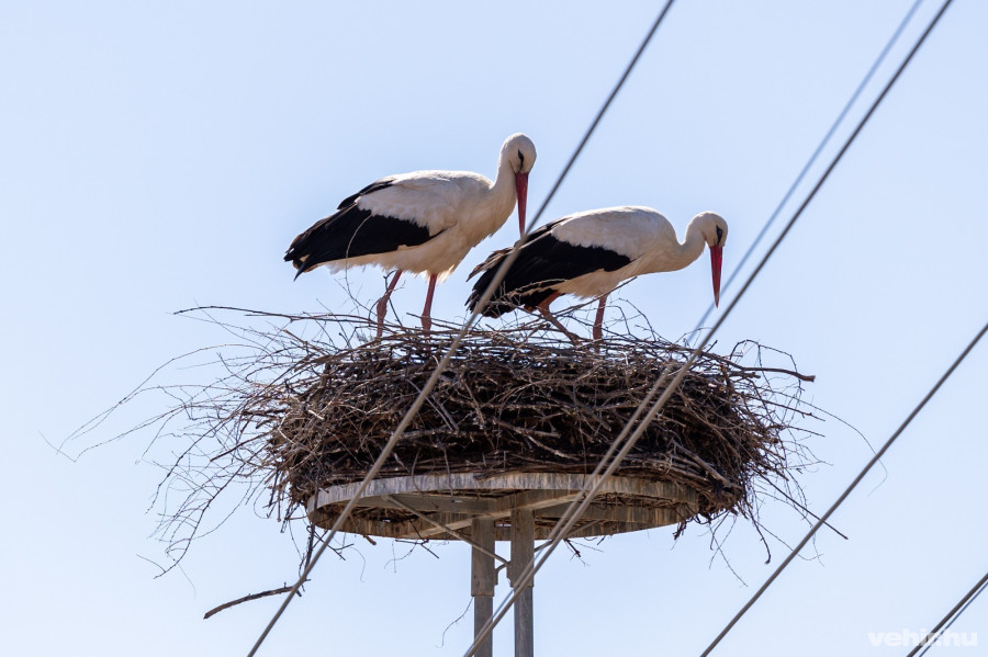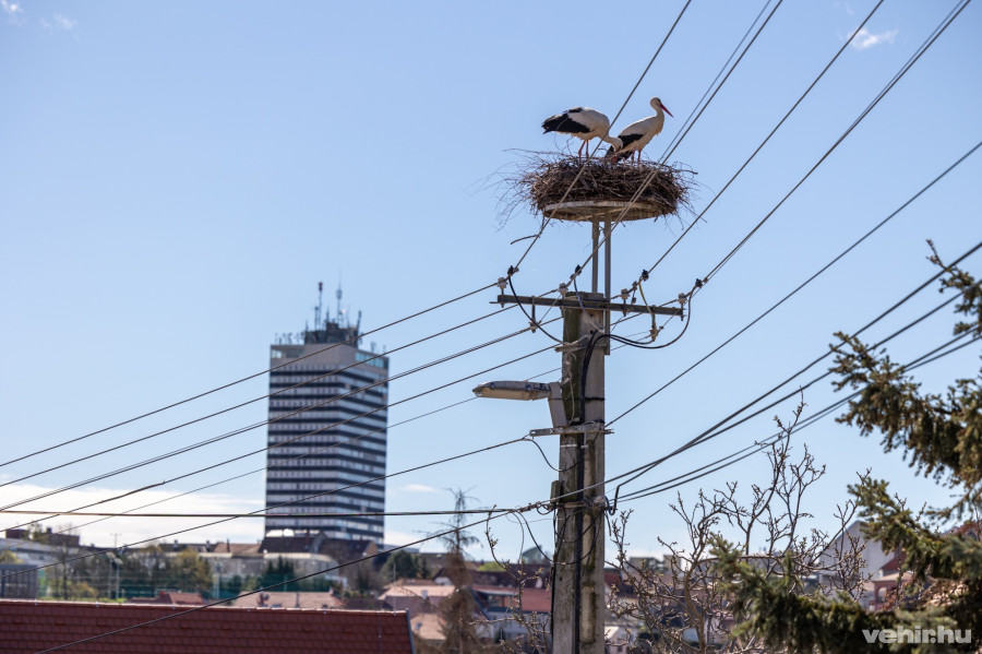 Pár napja megérkezett a Pajta utcai gólyapár mindkét tagja, akik már neki is láttak fészkük tatarozásának.