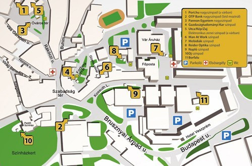 Egy hatalmas koncerttér a Kossuth utca és környéke, nem könnyű megtalálni a kiválasztott zenekar fellépőhelyét. Persze sokan csak bolyonganak, minden koncertből hallgatnak egy keveset, majd tovább haladnak. Talán megpróbálják beazonosítani, hogy épp ki zenél, de végül megelégednek annyival, hogy az a csapat tetszett nekik a legjobban, akik például csütörtök este zenéltek a Séd mozinál. Tapasztalatom szerint még az itt élők is rendszeresen összekeverik a Fortuna és Gizella udvart.