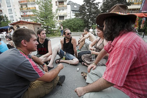 - Igen, rajtunk maradt, mert még ez hangzik a legjobban, pedig közben még az említett helyről is kitiltottak minket. Valójában nincs hivatalos neve a formációnak. Szóval se név, se banda, csak koncertek. Viszont ars poetika van: a kocsmagitáros sokkal előrébb való, mint a tábortüzes gitáros.