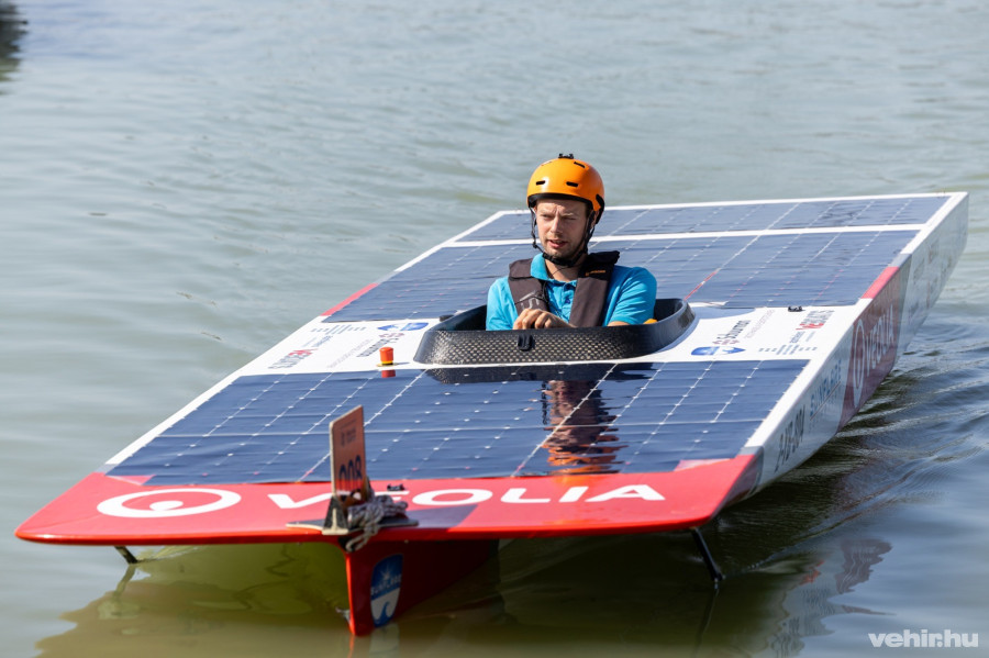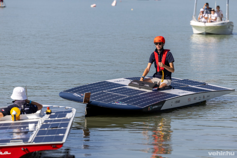 Ilyen hajóból összesen tíz érkezett Balatonalmádiba pénteken: hét Hollandiából – innen ered a solar boat verseny ötlete – egy Lengyelországból, kettő pedig Magyarországról, a Pannon Egyetem és a BME csapataival, de a többi nemzetközi induló is valamelyik európai egyetemet képviseli a versenyben.