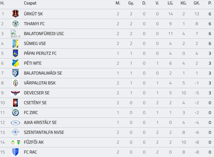 A második fordulóban a Devecser 4-2-re győzött a Péti MTE ellen, a Balatonfüredi USC idegenben 6-2-re verte a Fűzfői AK-t. A Várpalota 2-0-ra nyert az FC RAC ellen, a Tihanyi FC pedig 3-1-es sikert aratott Zircen. A Sümeg szoros meccsen 2-1-re múlta felül a Csetényt, az Úrkút fölényes, 6-1-es győzelmet aratott a Szentantalfa ellen. Az Ajka-Balatonalmádi derbit novemberre halasztották, a pápa pedig szabadnapos volt.