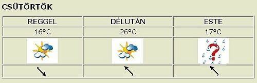 Csütörtökön este nyugat felől hidegfront éri el az országot, ez azonban a határ közelében megtorpan. A front mentén záporokra, zivatarokra van kilátás, főként tőlünk nyugatra vonulnak majd a csapadékot adó felhőtömbök, Veszprém ezek határán helyezkedik majd el, néhány kilométeren múlik majd, lesz-e eső a megyeszékhelyen a Veszprémi Ünnepi Játékok első napján. A rendezvény honlapján feltüntetett információk szerint az Arénában tartják meg a csütörtöki koncerteket, de a végleges döntést délelőtt hozzák meg a szervezők.