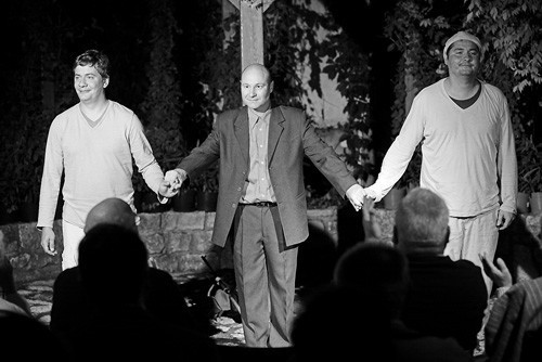A darabot Tóth Loon dolgozta át és ő is állította színpadra. Közreműködik benne még Szűcs László és Máté P. Gábor is. A színház művészeiből álló Szent Genéziusz Kultúrkommandó első produkcióját Veszprémben a következő évadban már láthatják a nézők a Latinovits Zoltán Játékszínben.