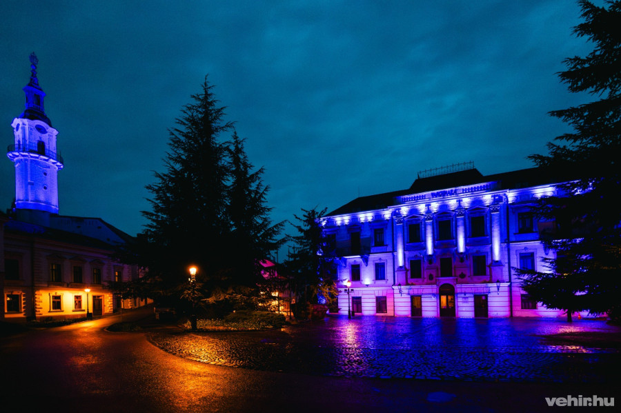 Ezért öltöztek kékbe szerda este Veszprém ikonikus épületei