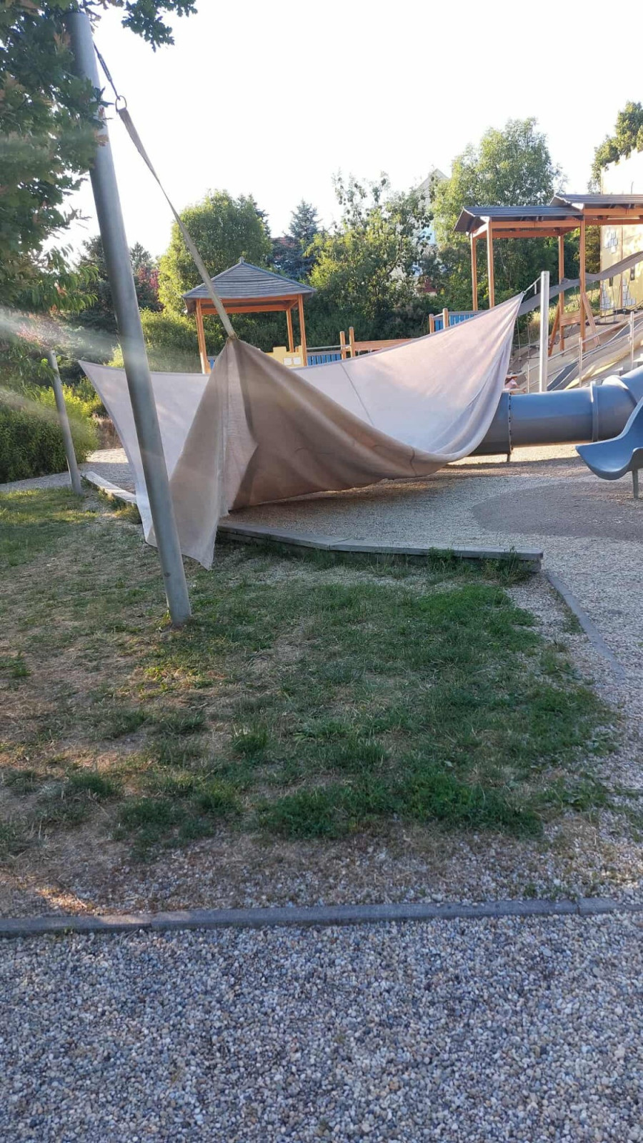 A posztban egy konkrét rongálást is megemlítenek, valaki szándékosan szétvágta a Rézsűs játszótér napvitorláját, ami a gyerekeket hivatott védeni a tűző nap ellen, aminek pótlására a közeljövőben nem tud sor kerülni.