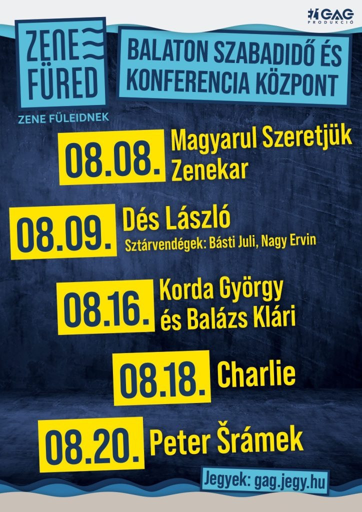 A koncertsorozat augusztus 8-án kezdődik a Magyarul Szeretjük Zenekar koncertjével. A magyar zenei korszakok lenyomatát hallhatja a közönség a füredi szabadtéri színpadon. Megelevenednek a legnagyobb legendák, a ’60-as évek táncdalfesztiváljának ikonjai, a ’80-as 90-es évek korszakának nagyágyúi és persze a mai slágerek is.