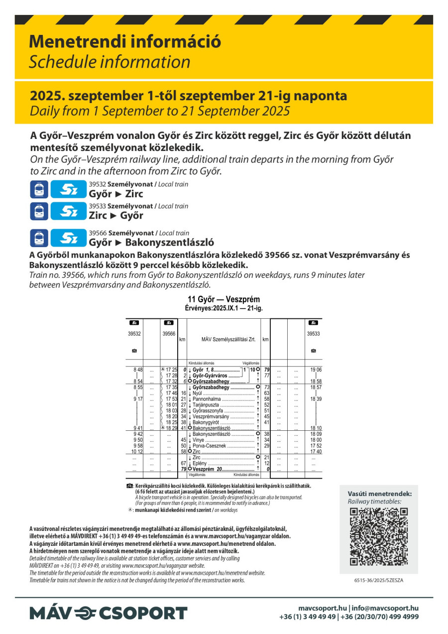 Mentesítő vonatok közlekednek Zirc és Győr között