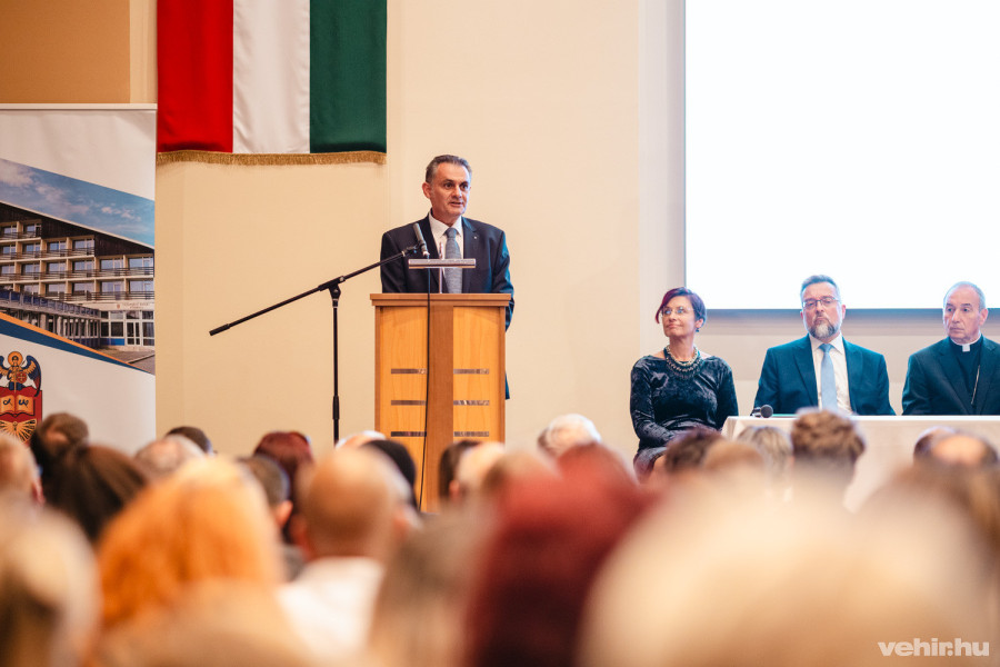 Az ünnepi beszédet dr. Sebestyén József, a főiskola rektora mondta. Felidézte az intézmény történetét, jogelődjét, valamint a stratégiai célokat, amelyek között 2020-ban megfogalmazódott az egészségügyi képzések elindítása. Az Oktatási Hivatal engedélyével idén indulhatott el az ápolás és betegellátás szak, amelyet a rektor történelmi jelentőségűnek nevezett a veszprémi felsőoktatásban.