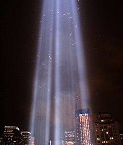 A szeptember 11-ei merénylet évfordulóján aVilágkereskedelmi Központ ikertornyai helyén égbe szökő két emlékfénysugár szemlélői különös jelenségnek lehettek tanúi. A fénysugarakban több ezer fehér tárgy röpült és keringett, amelyet más éjszakákon nem lehetett látni. A rejtélyre a kutatók adták meg a választ: a keringő fénypontok vándorútjukról letért madarak voltak.