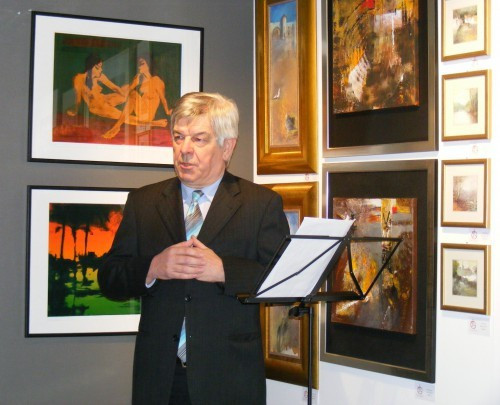 Veszprém város önkormányzata nevében Némedi Lajos alpolgármester köszöntötte a megnyitóra érkezőket. – Ez a galéria a kultúra, a művészet temploma, de legalábbis kápolnája – fogalmazott. Hozzátette, kellő áhítattal tekintsünk ezekre az alkotásokra, és ha van rá anyagi lehetőségük, szerezzenek örömöt másoknak az itt vásárolt képekkel.