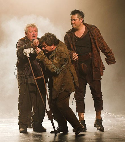 Eperjes Károly hat éve még pimasz vitalitással, izmos cinizmussal formálta meg a szálakat mozgató Pukkot, dinamizmus és erő volt legalább az ő játékában (ha az előadás egészében nem is). Tréfáiban a nyers gonoszság manifesztálódott, nevetésétől itt-ott elrettent a néző. Most fáradt volt, sokkal halványabb.
