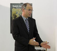 A sok vendég, érdeklődő miatt Rainer Pál, a kiállítás kurátora „csak” statikus kiállítás-bemutatót tudott tartani, mivel nem lehetett megközelíteni a tárlókat és tablókat, de így is élvezetesen és sajátos humorral fűszerezve ismertette a tárlat felépítésének logikáját és Laczkó Dezső munkásságának sokszínűségét.