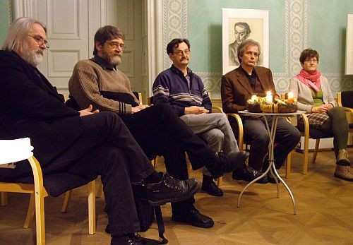 Az értékelő gondolatok után kávéházi hangulatban folytatódott az este, hosszas unszolásnak köszönhetően több alkotó is megnyilvánult: Fenyvesi Ottó Halott vajdaságiakat olvasva, Cs. Pataki Ferenc A szent este, Búzás Huba Képeslap Isztriából, Domján Gábor Tükör a körtefán című művét olvasta fel.