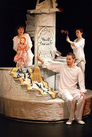 – Mosonyi Aliz több művét is rendeztem már – itt, a Kabócában a Szekrénymeséket. Nem aktualizálásnak mondanám – Mosonyi Aliz kiemel egy-egy szempontot, egy-egy figura szempontját, akit érdekesnek talál. Ebben a történetben nagyon fontos lesz a boszorkány, aki elátkozza Csipkerózsikát. Vajon hogyan jut el valaki odáig, hogy ilyen szörnyű átkot mondjon egy ártatlan kislányra, s vajon mi lesz ezután, hogyan tud tovább élni? Ezek a kérdések is hangsúlyt kapnak amellett, hogy Csipkerózsika történetét látjuk. Gyönyörű szép Csipkerózsika, romantikus királyfi, szerető szülők szerepelnek a darabban Zsuzsi boszorkány mellett. A szereplők: Csipkerózsika – Lovászi Edina, Zsuzsi boszorkány – Mákszem Lenke, Királyfi – Futó Ákos, illetve Jakab Ádám. Élő hangszeres zenével Gyulai Csaba kíséri az előadást. Kiss Erzsi zenéje igazán izgalmas, sok énekes megoldást használ a hangulatok, a hangsúlyok erősítéséhez.