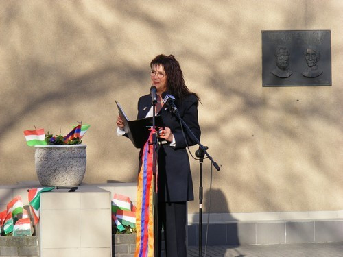 Fodorné Jobbágy Éva, a Veszprémi Örmény Kisebbségi Önkormányzat képviselője és az Örmény Kultúráért Alapítvány titkára köszöntötte az emlékezőket a Török Ignác utcában. – 2000. november 3-án avatták fel az örmény származású Kiss Ernő és Lázár Vilmos honvédtábornokok emléktábláját. Emlékezzünk a dicső 1848-49-es magyar forradalomra és szabadságharcra, s tisztelettel adózzunk a mártírhalált halt vértanúk emlékének is – szólt a jelenlévőhöz.