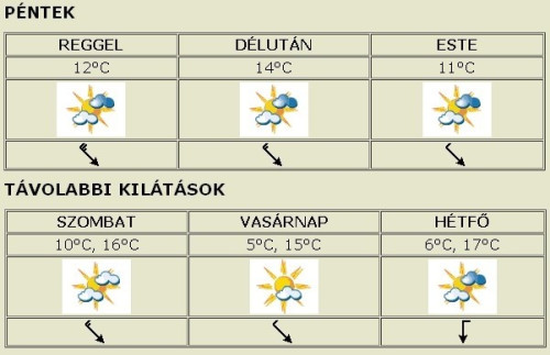 Pénteken erősen felhős, borult marad az ég, csapadék nélkül. Élénk, olykor erős északnyugati szél fúj, viharos lökések is lehetnek. A hőmérséklet reggel 12°C, délután 15°C körül ígérkezik.