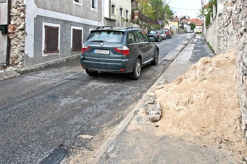 Szent István utcában, az óvoda melletti ház támfalszerű kerítésének felújítása miatt közel három hétig nem lehetett a járdát használni, mivel azt lezárták. Először egy girbegurba faággal, majd egy murvakupaccal – és ezzel nagy nehézség elé állították a gyalogosokat. A nagy autósforgalom és az utca keskenysége miatt nem volt könnyű megoldani a helyzet – főleg a babakocsival közlekedőknek, az óvodába érkező, vagy onnan távozó gyerekes családoknak, időseknek. Várakozni, kockáztatni kellett, amit tovább nehezített, hogy utca itt kanyarodik, és nem lehet látni az érkező járműveket.