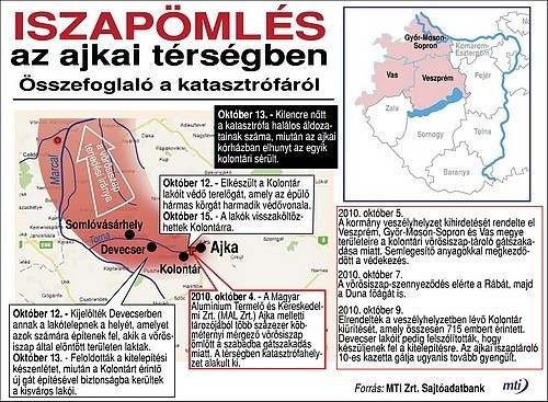Magyarország történetének legnagyobb ipari katasztrófája következett be, amikor átszakadt a MAL Zrt. ajkai iszaptározójának gátja egy évvel ezelőtt, 2010. október 4-én. A kizúduló 1,8 millió köbméter vörösiszap elöntötte a szomszédos Kolontár, Devecser és Somlóvásárhely településeket. A tragédiában tíz ember meghalt, mintegy százhúszan kórházba kerültek és több mint 300 család veszítette el otthonát.