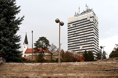 – Az épület technológiájából és elhelyezkedéséből adódóan a bontás rengeteg pénzbe kerülne, a költség akár az 1–2 milliárd forintot is elérheti. Talán furcsa gondolat, de nagyon jó lehetőségnek ítéljük a húszemeletes meglétét. Jelen állapotában bántó eleme a városképnek, mert külső-belső felújításra szorul. Ha eddig nem épült volna húszemeletes a városban, elleneznénk a megépülését, mert nem illeszkedik a város léptékébe, rátelepszik a városképre. Viszont megépült, mégpedig azért, hogy az elmúlt rendszer nagyságát hirdesse. Ez a mondanivaló, eszmei tartalom mára eltűnt, az épület viszont itt maradt, és a városban szinte mindenhonnan látható. Ez a városképi adottság egyedülálló lehetőséget nyújt arra, hogy új tartalmak hangsúlyos hirdetőjévé váljon. Már csak az új tartalmat kell megtalálni. Lehet ez például a környezettudatosság: ha úgy sikerülne a húszemeletest felújítani, hogy az öko-szemléletnek megfelelően működtethető, környezetbarát anyagokkal készülő, és megújuló energiákat (nap, szél) használó épületté válna – és ráadásul külső megjelenésében is ezt a szemléletet tükrözné –, az példaértékű lenne, és a város jó hírnevét gazdagítaná.