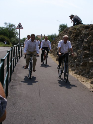 A 3.1 kilométeres új szakaszt Pál Béla, Tósoki Imre és Kovács Tamás avatta, majd a vendégek is kerékpárra pattantak, hogy kipróbálják az új szakaszt.