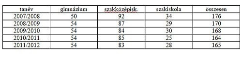 (a középiskolai osztályok számának alakulása Veszprémben)