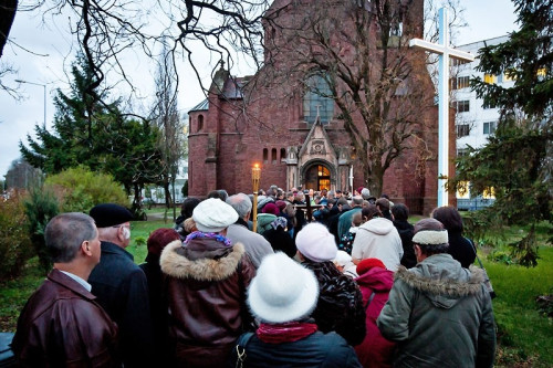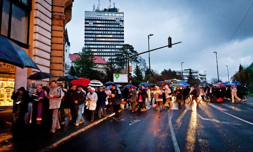 Keresztút menetet tartottak március 30-án, péntek este Veszprémben a Károly-templomtól a Szent Mihály-székesegyházig. Képriport.