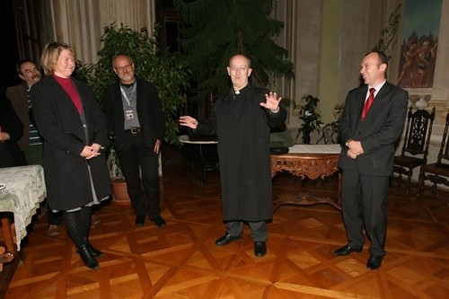 Este a veszprémi érsekségben látta vendégül a csoportot Porga Gyula polgármester és Márfi Gyula érsek, aki vidám történetekkel fűszerezve mutatta be rezidenciáját. Hangsúlyozta, jó kapcsolatokat őriznek a helyi médiumokkal, kiemelte a Veszprém Televízióval meglévő eredményes együttműködést. – Az egyház tanítását változatlan tartalommal, de modern formában kell közölni az emberekkel. A kommunikációs eszközök nem csak informálnak, hanem formálnak is – mutatott rá az érsek, aki forralt borral is megkínálta vendégeit.