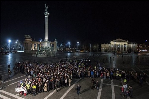 Mintegy ezren emlékeztek a Malévra a magyar légitársaság leállásának egyéves évfordulóján vasárnap Budapesten, a Hősök terén.