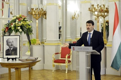 Az államfő erről a kommunizmus áldozatainak február 25-i emléknapja alkalmából tartott sajtótájékoztatón szólt vasárnap a Sándor-palotában tartott sajtótájékoztatón. Bejelentette, hogy a Köztársasági Elnöki Hivatal (KEH) irattárának rendezése közben rábukkantak Nagy Ferenc egykori miniszterelnök 1947-ben kikényszerített lemondó nyilatkozatára. Mint mondta, ebből a történészek által ismert, ám eddig elveszettnek hitt dokumentumból kiderül, hogy a kommunista párt hataloméhségében még a hivatalban lévő miniszterelnök lemondását sem tudta megvárni, a Dinnyés-kormányt ugyanis Nagy Ferenc 1947. június 1-jén tett lemondása előtt beiktatták.