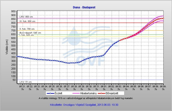 Ami a 2013-as várható árvizet illeti, Budapest alacsonyabban, a vízhez közelebb fekvő utcáit lezárhatják, kedd este nyolc órától az alsó rakpartok teljes hosszában megállási tilalom lép életbe. Hétfőtől nem közlekednek a kompok Szob és Pilismarót, valamint Visegrád és Nagymaros között. A közelgő árhullám miatt értékeik időbeni kimentésére hívta fel a Duna mellett lakók figyelmét hétfőn Dunakeszi polgármestere. Az elmúlt ötven évben nem volt olyan magas vízszint a Dunán, mint amilyenre a következő napokban várható árvízhelyzetben számítani kell - mondta Giró-Szász András kormányszóvivő. A környező folyók áradása miatt hétfő délben bezárták a győri uszodát.