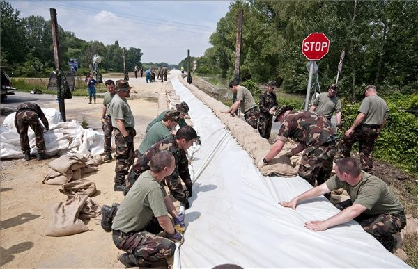 A szükséges források, készletek rendelkezésre állnak, a kivitelezés a tetőzés várható időpontjáig nagy biztonsággal végrehajtható. A délután 2 órás mérések ismét 10 centiméter körüli emelkedést mutattak a Duna vízállásában. Nagybajcsnál 838 centiméteres, Budapestnél 738 centiméteres a folyó magassága. Komáromnál 737, Esztergomnál 680 centiméteren áll a Duna, és már Nagymarosnál is meghaladja a 6 métert (606 centiméter) a vízszint.