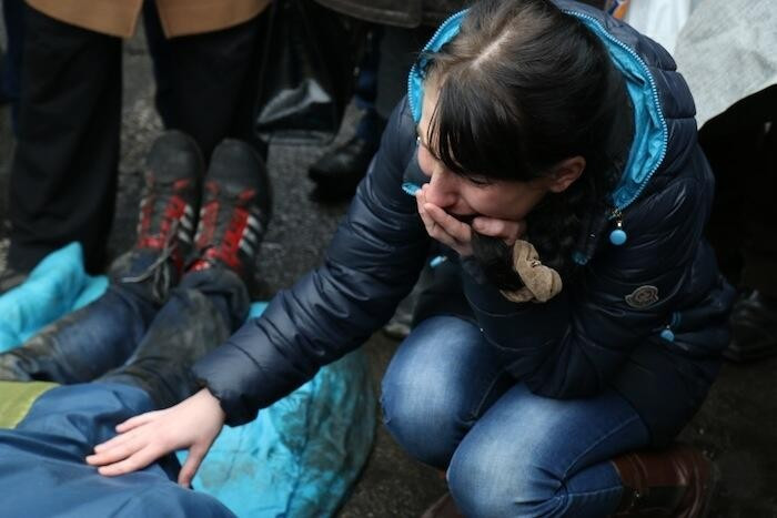 Ez volt az a pillanat, amikor már nem számított, hogy a tüntetéseket kiváltó politikai vitában Janukovicsnak vagy az ellenzéknek volt-e igaza. Amikor a demonstrálókra éles lőszerrel támadnak, amikor a háztetőkről mesterlövészek szedik le a tehetetlen célpontjaikat, amikor a sebesülteket ellátó vöröskeresztes önkénteseket is egymás után érik a célzott lövések, akkor a vérontás felelősei számára nincs mentség. A Belügyminisztérium azzal igyekezett hárítani a felelősséget, hogy a tüntetőket neonáci terroristának állította be. Tagadhatatlan, hogy a tömegben valóban voltak neonáci szervezetek tagjai és futballhuligánok, ám a skála ennél sokkal színesebb: tinédzserek és nagyszülők, baloldaliak és jobboldaliak, ukránok és oroszok, vidékiek és kijeviek küzdöttek a maguk igazáért. A BBC tudósítója élő adásban kérdezte meg egy 16 éves lánytól, hogy mit keres a Majdanon, mire ő azt felelte: „a hazámról van szó, itt a helyem”.