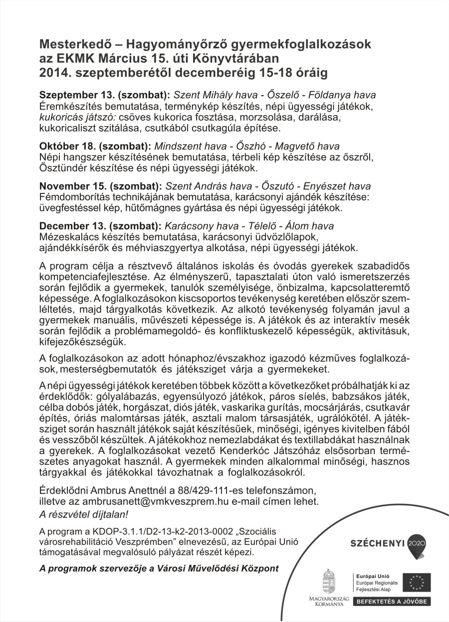 Hagyományőrző foglalkozások a Március 15. utcai könyvtárban