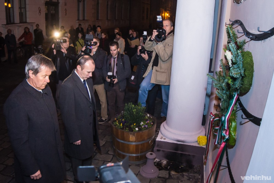 Dr. Brusznyai Árpád emléktáblájánál koszorút helyezett el az 56-os Szövetség veszprémi szervezete, Veszprém Megyei Jogú Város Önkormányzata, a Kereszténydemokrata Néppárt veszprémi szervezete, a FIDESZ veszprémi szervezete, a Keresztény Értelmiségek Szövetsége veszprémi szervezete és a Mozaik Egyesület.