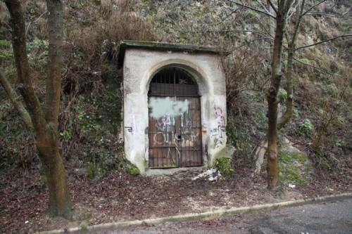 Benedek-hegyi „alagút” bejáratát (a II. világháborúban ez is menedékhelyet